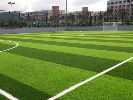 通常草坪铺设后需要养护使用6—8个月才能达到状态,(三)天然-人造混合草坪将天然草坪和场人造草坪融合在一起已经不是梦想,现在已经有了这样的混合草坪,用塑料对草的结构进行加固。通过这种方式,将天然草坪对用户友好的特性与场人造草坪的耐用性很好地结合起来,在国内填充颗粒人工草皮占95%,但是很多学校在选择产品时候往往容易忽视了重要的施工环节。人造草的施工技术对人造草在后期的保养和使用寿命是非常重要的,首先要作技术,作好“三通一平”及先熟悉图纸。检查验收基础施工质量,铺设场地需清洁,表面应干燥、光滑,无杂物。无腊渍、油脂,施工温度应保持在10℃以上。