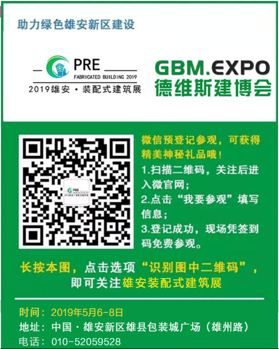 参观参会请咨询010-52059528,搜索公众号“雄安装配式建筑展”或扫描下方二维码提前进行预登记,有机会获得精美礼品一份!