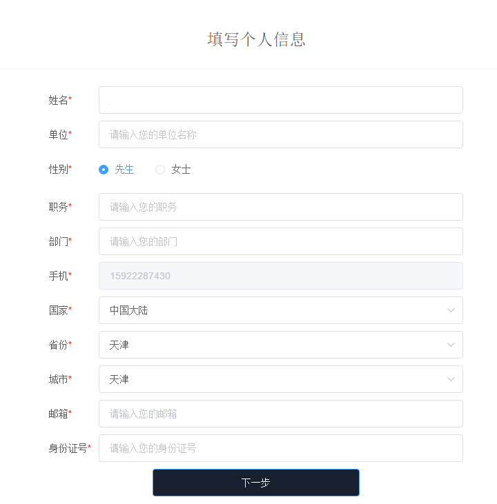 3.提交手机验证码后,请填写个人信息。
