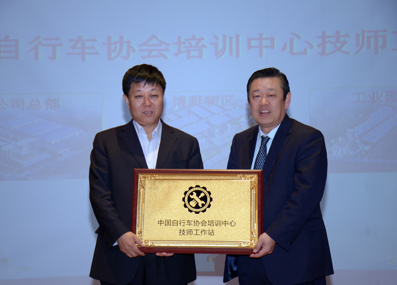 4月12日,以“环保涂装 绿色出行”为主题的中国自行车、电动车水性涂装高峰论坛在晨阳水漆举行。会上,国家轻工业自行车质量监督检测中心、培训中心主任郑培东向晨阳水漆授予“中国自行车协会培训中心技师工作站”牌匾。这标志着晨阳水漆成为中国水漆高素质技能人才的摇篮,全力为生产一线培养以水漆涂装技术为基础的技能应用型人才。