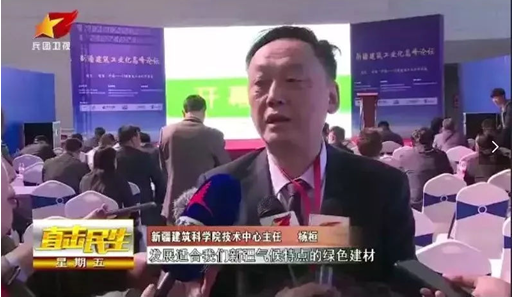 图为新疆建筑科学研究院技术中心主任 杨桓在展会暨论坛现场接受采访