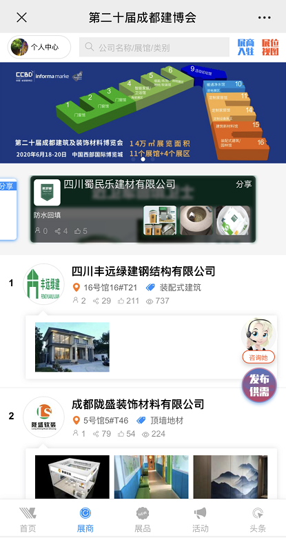 登录“成都建博会线上展会”方式:搜索关注“成都建博会CCBD”公众号,点击”线上展会“即可。